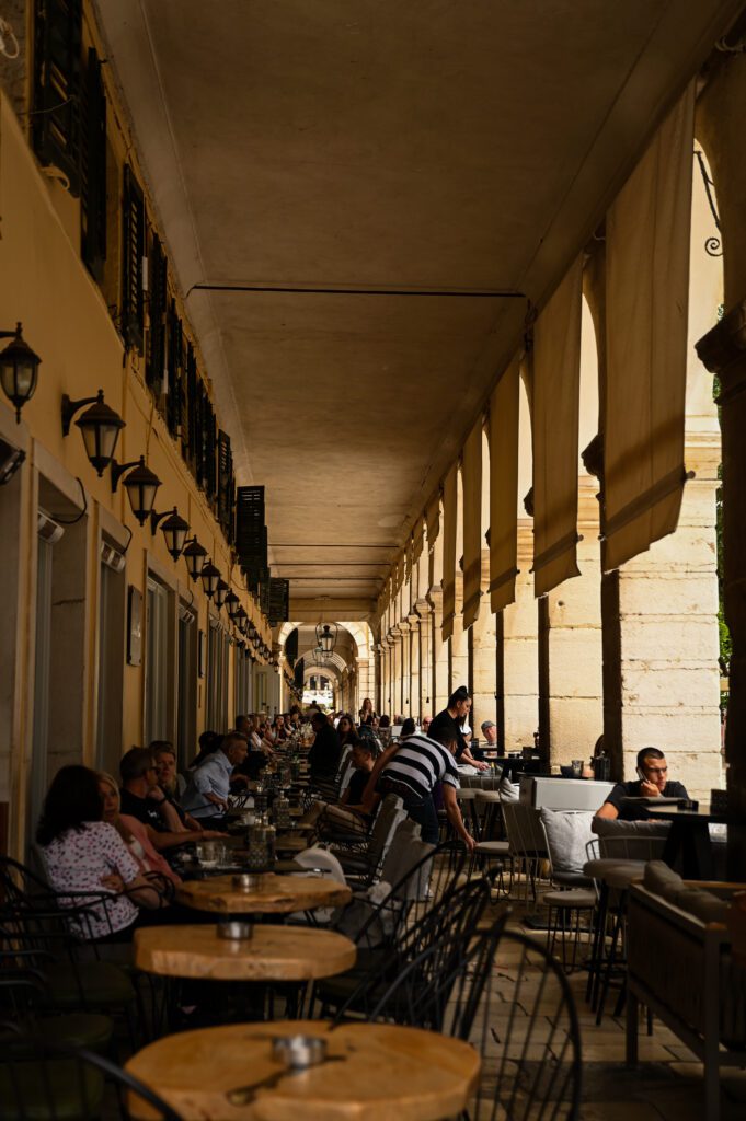Liston Holy – ciężko nie zauważyć szwędając się po mieście arkad z XIX w. bliźniaczych do Rue de Rivoli w Paryżu, zbudowanych właśnie podczas panowania Francuzów na Korfu. Pomiędzy arkadami można przysiąść i delektować się nie najtańszą kawą.