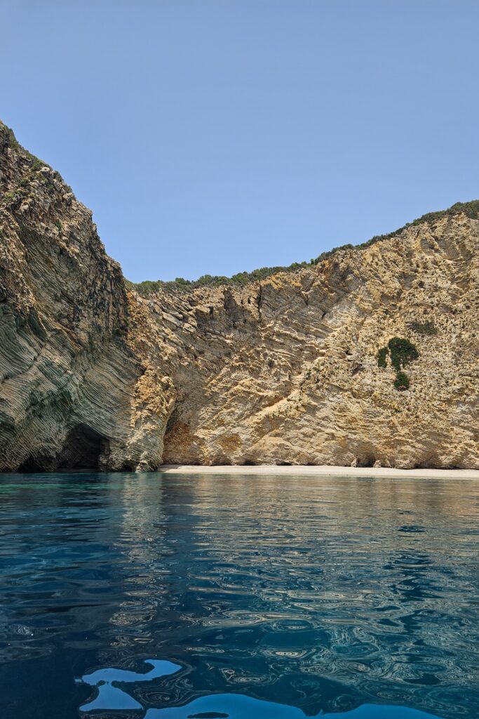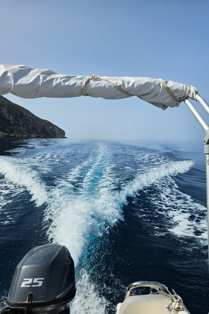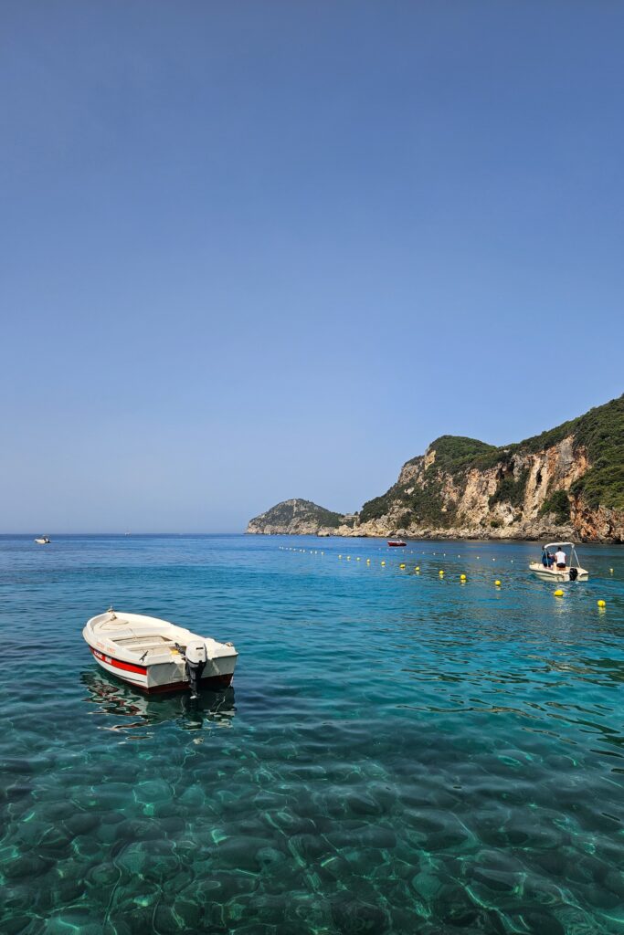 Rejs motorówką – w okolicy Paleokastritsy był mój wyjazdowy strzał w dziesiątkę. Przeżycie – niesamowite i zdecydowanie najlepszy dzień na Korfu. Na wyspie jest wiele plaż z dostępem tylko od morza i stety – niestety są one najpiękniejsze. Motorówkę wynajęliśmy z wypożyczalni Ampelaki Boats i to był nasz motorówkowy pierwszy raz. Właściciel pokazał nam jak prowadzić motorówkę, wytłumaczył na co uważać i puścił w świat, a raczej w morze. W cenie motorówki nie jest jest zawarta cena paliwa. Za paliwo płaci się zwracając motorówkę, u mnie to było 20€, a przepłynęliśmy sporo. Najmniejsze motorówki mieszczą 4 osoby, ale do dyspozycji są też większe łódki. Poza sezonem (połowa maja) za wynajem motorówki na 6h (totalnie dla mnie wystarczająco) zapłaciłam 90€ + 20€ paliwo.