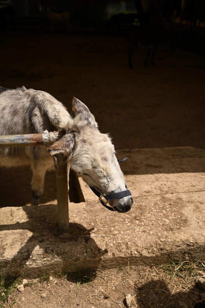 Corfu Donkey Rescue – schronisko dla osłów. Wstęp jest darmowy, ale warto wesprzeć schronisko dobrowolnym datkiem. Na miejscu poza osiołkami panują również koty… i kogut.