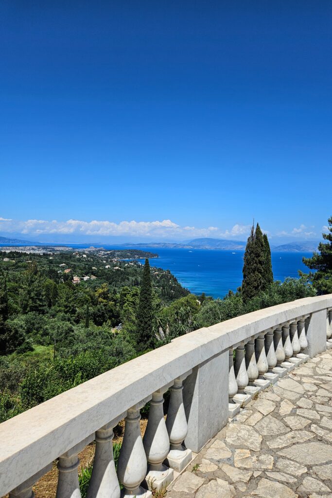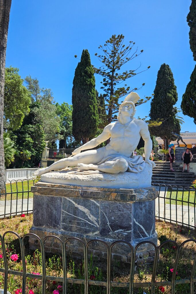 Pałac Achillion –  to jedno z ciekawszych miejsc na Korfu. Został wzniesiony w 1890 r. jako letnia rezydencja cesarzowej Elżbiety, znanej jako Sisi, po samobójczej śmierci jej syna. Głównym motywem jest wszechobecny Achilles. Podczas mojej wizyty w pałacu trwał remont, w związku z czym zwiedzający mieli dostęp jedynie do ogrodów, a bilet wstępu kosztował 5 € za osobę. Mimo to warto było odwiedzić to miejsce, ponieważ jest naprawdę piękne.