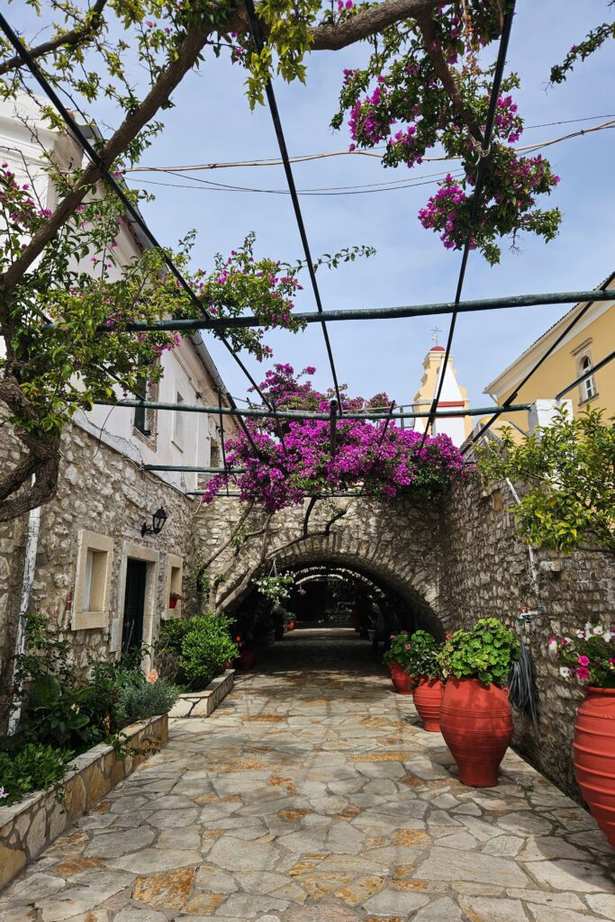 Danilia Village – oglądaliście „Bonda: Tylko dla Twoich oczu” lub serial „Durrellowie”? Te produkcje były kręcone właśnie na Korfu, a część scen powstała w wiosce Danilia, która jest repliką tradycyjnej wioski z lat 30. XX w., pełną urokliwych kamieniczek. Wstęp kosztuje 10 € dla dorosłych i 5 € dla dzieci, ale ta opłata jest do wykorzystania w kawiarni, gdzie można zamówić napoje. Na terenie wioski znajdują się również sklepiki z pamiątkami, mini winiarnia, a także restauracja. Danilia Village należy do sieci Grecotel, a jej malownicza sceneria sprawia, że to również popularne miejsce na organizację ślubów.