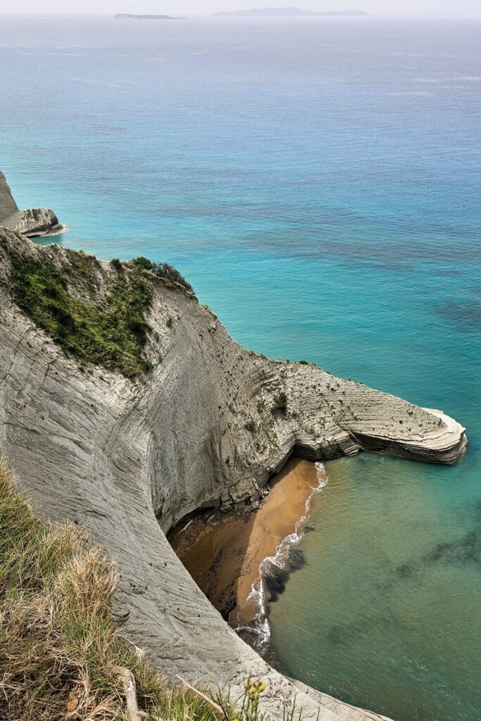 Cape Drastis – jedno z bardziej spektakularnych miejsc na Korfu. Białe klify z turkusową wodą zachwycają. Schodząc z parkingu na sam dół tuż przy brzegu można wsiąść na łódkę i zwiedzić okolicę, jednak z dołu jest ona mniej zachwycająca niż ze szczytu.