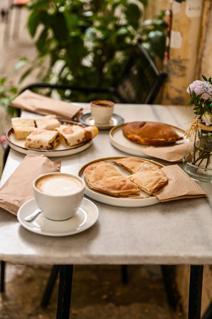 – to urocza kawiarenko-piekarenka w jednej z bocznych uliczek „Korfu Town”. Jeżeli chcecie zjeść pyszne lokalne wypieki i wypić dobrą kawę to jest to dobre miejsce na to. Mają sporo wegetariańskich i wegańskich opcji.