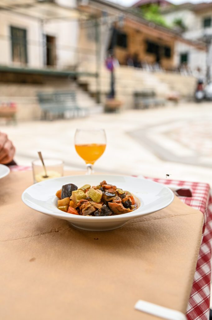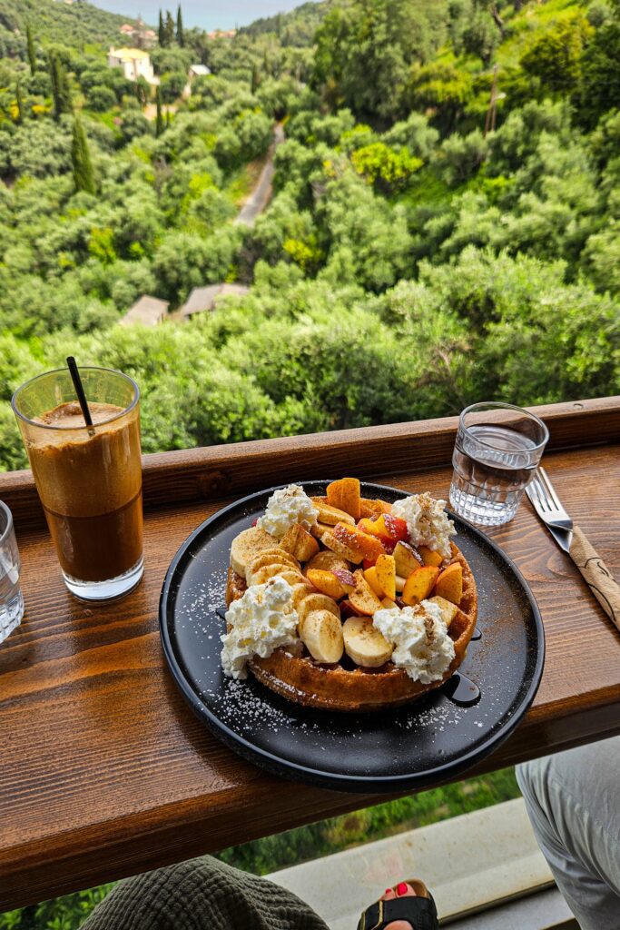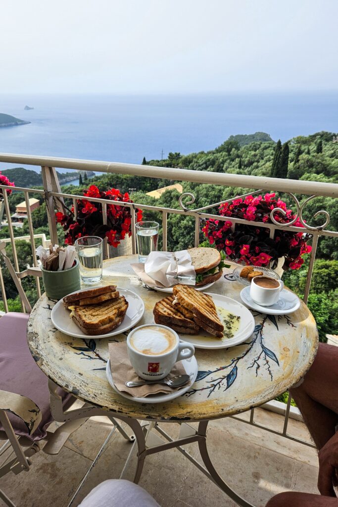Na wyspie jest ogrom urokliwych tawern i kawiarenek z cudownymi widokami (jeszcze nigdzie nie widziałam aż takiego natłoku „miejsc z widokiem”), które serwują zarówno tradycyjne greckie/korfickie smakołyki, jak i nieco mniej lokalne dania. Podrzucę Wam te, które zapadły mi w pamięć i, które chętnie odwiedziłabym ponownie.