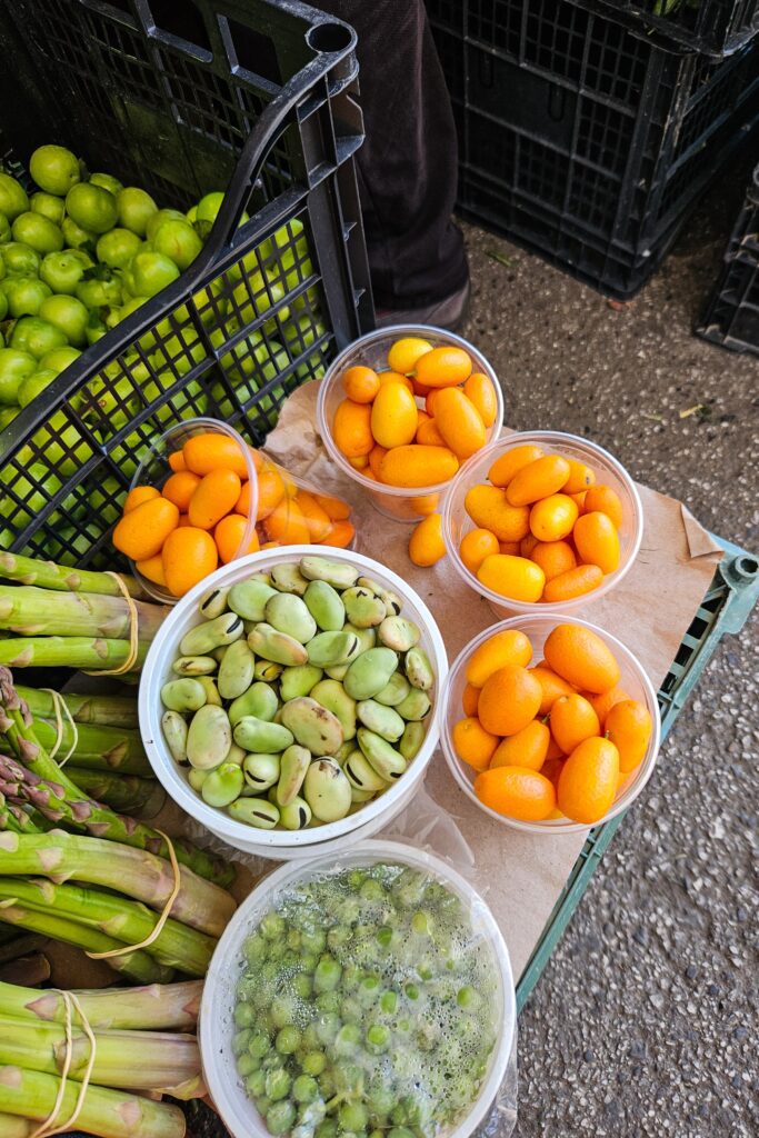 Kumkwat – to taka trochę mini pomarańcza z jadalną skórką i gorzko-kwaśno-słodkim miąższem z malutkimi pesteczkami. Sady z kumkwatami znajdują się głównie na północy wyspy, ale same owoce można natknąć się np. na targach. Kumkwat to zdecydowanie najbardziej charakterystyczny produkt lokalny z Korfu, a wyroby z nim (np. likiery i słodycze) dostępne są dosłownie na każdym rogu. Sezon na kumkwaty trwa od późnej jesieni do wiosny, w maju to już jego końcówka.
