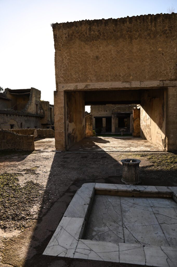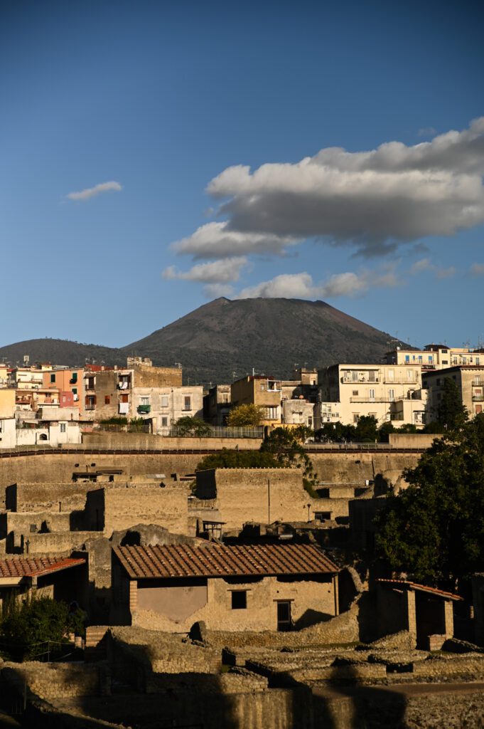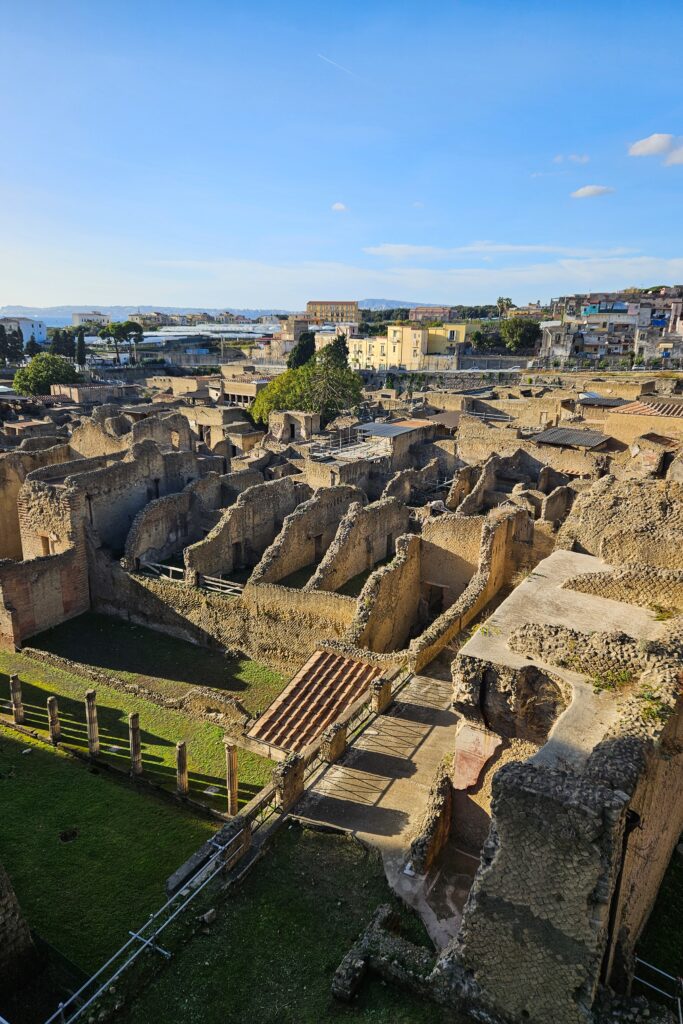 Herculanum – rzut beretem od stacji Ercolano Scavi (dosłownie kilka minut pieszo) znajduje się Park Archeologiczny Herkulanum (Ercolano), czyli kolejne starożytne miasto zniszczone podczas Wybuchu wulkanu Wezuwiusz w 79 r. n.e. Wejście kosztuje kilkanaście € i opłaca się według mnie tylko kupując Artecard – bo sam widok z góry na miasteczko przed kasami biletowymi jest wystarczający. Miasteczko jest dużo mniejsze niż Pompeje, ale za to lepiej zachowane – zniszczyła je głównie lawa, przez co sporo budynków ma dachy, a także zachowały się niektóre konstrukcje drewniane i pomniki.