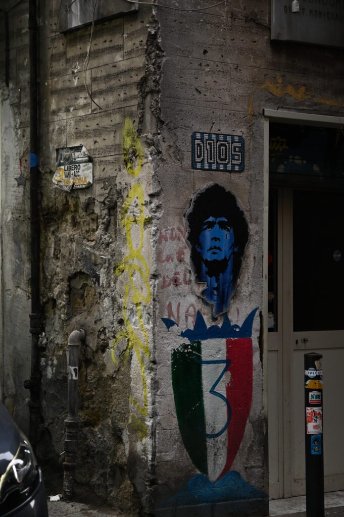 Murale Diego Armando Maradona – w dzielnicy Quartieri Spagnoli pełnej wąskich uliczek i dziesiątek ściennych malowideł znajduje się słynny mural, upamiętniający argentyńskiego piłkarza Maradona, który w latach 80. wraz SSC Napoli zdobył Mistrzostwo Włoch, superpuchar Włoch czy puchar UEFA.