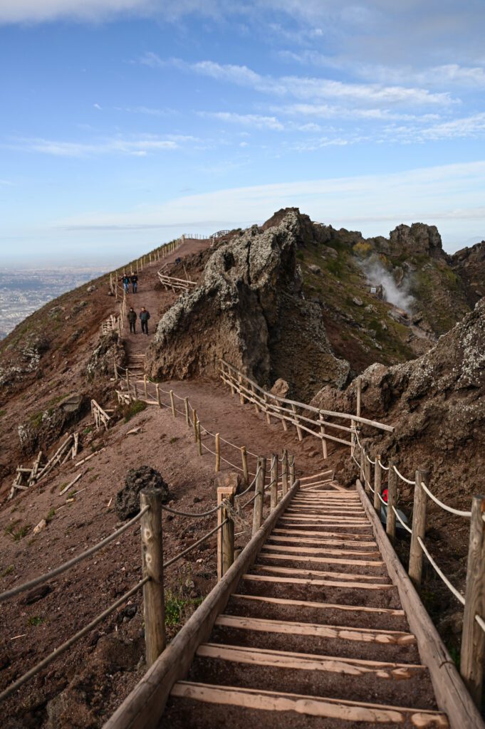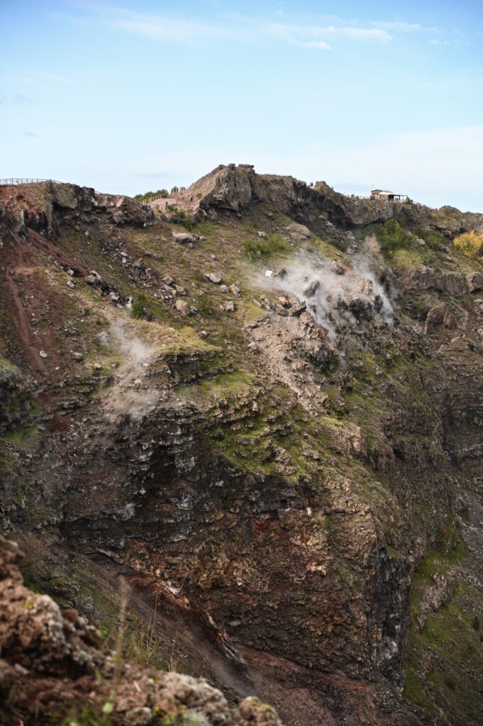 Jak dotarłam z Neapolu na Wezuwiusz? Kolejką z Napoli Piazza Garibaldi do Ercolano Scavi za 2.60€. Wychodząc ze stacji skręt w lewo do biura Vesuvio Express i transport z nimi pod samo „wejście” na Wezuwiusz za 10€ (można iść też nogami, ale to jest jakieś 15 km). Na Wezuwiusz można dostać się również samochodem – parking (6 €) znajduje się 2-3 km od wejścia, z którego kursuje autobus wahadłowy (3 € w dwie strony). Można także zabrać się z góry z innymi osobami.
